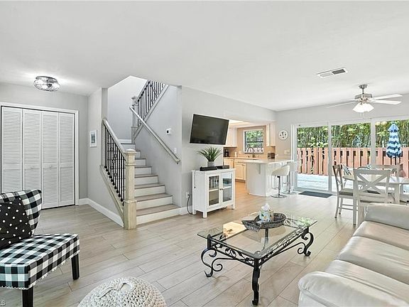 Step into the epitome of coastal elegance at 1140 5th Street South, Unit A, located in the heart of Olde Naples, where charm, convenience, and luxury converge. This beautifully appointed vacation rental offers the quintessential Florida lifestyle just a short stroll from the world-renowned 5th Avenue South, Third Street South, fine dining, boutique shopping, and the sugar-white sands of Naples Beach. Nestled on a lushly landscaped corner lot, this thoughtfully designed two-bedroom, two-bath residence seamlessly blends modern sophistication with classic beachside comfort. The open-concept living space features rich hardwood flooring, tastefully curated furnishings, and an abundance of natural light pouring in through expansive windows and glass doors. The gourmet kitchen is a culinary dream, boasting sleek granite countertops, high-end stainless steel appliances, and ample cabinetry for extended stays or entertaining. The inviting living room flows effortlessly into a tranquil private patio area, ideal for morning coffee or sunset cocktails under the tropical skies. Retreat to the serene primary suite, where soft coastal hues create a calming ambiance. The en-suite bath includes a walk-in shower and elegant finishes. The guest bedroom is equally well-appointed and shares access to a second stylish full bath, making this home perfect for couples, snowbirds, or discerning seasonal renters. Additional highlights include in-unit laundry, assigned parking, and proximity to Cambier Park, Naples Bay, and all the cultural delights the city has to offer. Whether you're enjoying a peaceful escape or soaking in the vibrant energy of downtown Naples, this property provides the ideal backdrop for unforgettable memories. Tenant also pays 11% taxes + a $750 non refundable seasonal reservation fee that covers the HOA application fees, departure cleaning fee, rental incidentals and booking fees.