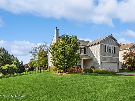 With nearly 3,000 square feet on a 1/4 acre fenced corner lot this home can't be missed! 5 bedrooms, one conveniently located on the first floor, accompanied by 3 full bathrooms and a spacious loft area. When you pull up its charming front porch and well-maintained landscaping immediately catch the eye. Inside, an open-concept living space welcomes you, adorned with elegant crown molding throughout. The family room offers a cozy retreat with its fireplace featuring a tile surround, while the chef-inspired kitchen delights with full-height cabinets, corian countertops, a large island, and modern appliances. The first floor also includes a full bathroom and a bedroom, alongside a sprawling mud/laundry room with ample folding space and storage. Upstairs, a comfortable loft area awaits, a perfect spot for relaxing or a get away play area for the kids. The primary bedroom is flooded with natural light, with an ensuite bathroom featuring new LVP flooring, dual vanity areas, soaking tub, a separate shower, and a custom closet. Three more additional bedrooms on this level with generous closet space as well. The basement offers potential for customization with a bathroom rough-in, serving as an ideal space for future plans or extensive storage. Outside, the home features a beautiful curved patio and a fully fenced yard on a corner lot. Located in the sought-after neighborhood of Blackberry Creek, residents enjoy the convenience of an onsite elementary school, parks, extensive walking trails, ponds and close proximity to the metro train and interstate access. Enjoy the quaint little town of Elburn or head a few miles east to all the bustling Fox Valley corridor has to offer!