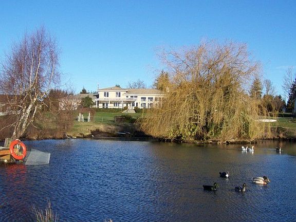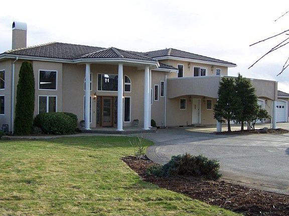 Beautiful home with Mediterranean and spanish design on 2 city acres. Life style of relaxing views & entertaining. 3,522 sq.ft. interior, elegant dining rm encompassed w/ columns & Chandelier. Spacious living area w/ southerly views of the valley & Mtns.3 way FP in office & Mstr Bdrm.Grand stairwell , loft lined with banisters w/ wet bar & balcony. Large raised patio w/ bench seating provides views over the island pond , stucco siding,tiled roofing , columns & covered drive thru parking.