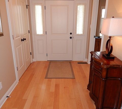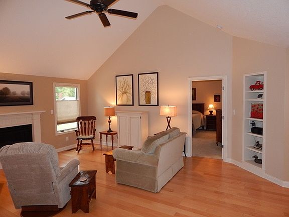Great room/Kitchen feature: Vaulted ceilings; Natural Hard Maple Floors; Custom made kitchen cabinets; Granite counters; Base units include mostly drawers; glass tiled backsplash; Nearly $5,000 in Appliances that are included; gas fireplace. The Master bath has a 5 x 8 no step 100% tiled walk-in shower with a Moen digital shower system with two rainfall, body jets and handheld slider and a heat lamp in the ceilings. Interior upgrades include: Den with custom wainscot paneling; painted doors and wood trim; 2-panel solid core doors; bathrooms and laundry have ceramic floors; oil rubbed bronze faucets; American Standard (Trane) high efficiency gas furnace; Anderson casement windows. Hardwood flooring was installed in 2014 in the Entry foyer, Great room, Dining room, Kitchen, 1/2 Bath, and Hallway. The water heater has a recirculating pump for instant hot water. All windows have custom made honeycomb double cellular blinds that are cordless and top down-bottom up. Siemens stand by generator stays. All 4 sides of the home have been landscaped including pine trees in the backyard.