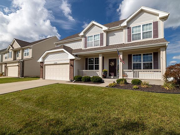 Welcome to this stunning two-story home boasting 5 bedrooms and 4 baths located in Crown Point's desirable Ellendale Farm subdivision. As you step inside, you're greeted by an open, light and bright interior. You'll love the 2-story great room, filled with natural light and designed for both relaxation and entertaining. The recently upgraded kitchen features stainless steel appliances, Quartz countertops, breakfast bar, an island, large pantry, and a generous eat-in area. Adjacent to the kitchen is a spacious dining room offering additional entertaining space along with a cozy living room. Well placed main floor mud room/laundry room and half bath complete the main floor. With five generously sized bedrooms, including a luxurious master suite, offering a large walk-in closet and well-appointed ensuite, there's plenty of space for everyone! The fully finished daylight basement offers additional living space, featuring a 5th bedroom, convenient three-quarter bath, kitchenette area, office/playroom, storage space and huge recreation room. The home's exterior showcases beautiful landscaping, inviting covered front porch, large maintenance free backyard deck, huge backyard, and is situated in a sought-after neighborhood. This property truly combines a great layout and wonderful style making it the perfect place to call home.