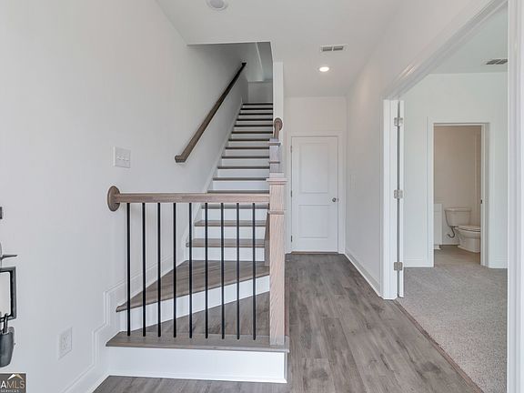 Brand new townhome in a highly desirable location. Gated community with incredible amenities. Close to downtown Sugar Hill, Suwanee Town Center and Buford - shopping, restaurants, community events and activities, and more. Terrace level entry foyer has a private bedroom and a full bath for guests or great as an office. Main level is open with a lot of sunlight. Gourmet kitchen with white cabinets, huge island, stainless steel appliances, quartz countertop and tile backsplash views to family room. Upper level, owner's suite with large walk-in closet, dual vanities, and a frameless walk-in shower, and secondary bedroom with private bath and laundry room. Enjoy the pool(water) view from the back deck. Resort-style pool with covered cabana, grills, fireplace, and outdoor dining area and a community lawn featuring group seating and fire pits.