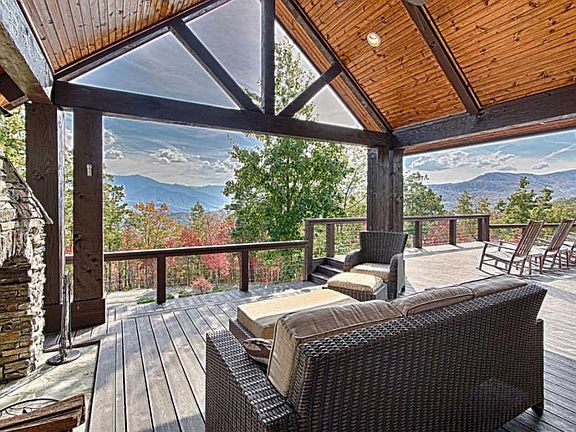 Located in an exclusive, gated community just 15 minutes from Gatlinburg, this custom-built craftsman retreat with 360-degree mountain views was designed with luxury entertaining in mind. Living spaces are oriented to face Mt. LeConte, the highest mountain in the Smoky Mountains, and opens directly to outdoor living areas on both levels. Open floor plan is beautifully detailed with vaulted ceilings, maple wood floors, extensive built-ins, and exposed Douglas Fir rough timber beams and columns. Large gourmet kitchen with Viking appliances, quartz counter tops, and large center island. Master Suite on main level with coffered ceilings, large walk-in closet, and master bath with whirlpool and ceramic tile shower with body jets. Full glass southern exposure, stone fireplace, and wet bar in the Great Room. Media/Game Room on lower level with wet bar and temperature-controlled wine cellar. With over 3,000 square feet of outdoor living space, there is plenty of room to relax and enjoy the scenery while keeping warm next to the double-sided fireplace. Long term attractive financing available to qualified buyers.
