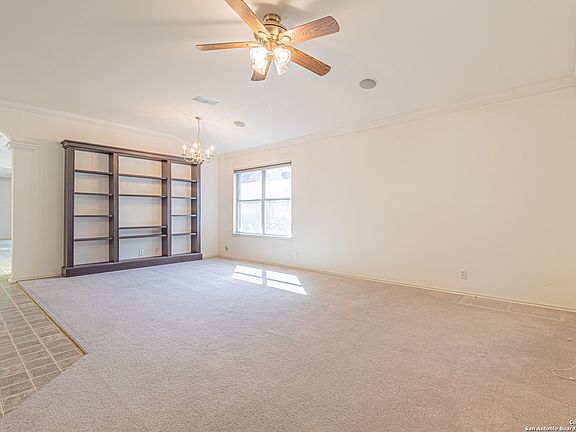 Welcome to this charming 3-bedroom, 2-bath home in the highly desirable Spring Vista community! Offering 2,136 sq. ft. of comfortable living, this home features two spacious living areas, ideal for entertaining, a home office setup, or a cozy retreat. The light-filled kitchen is thoughtfully designed with plenty of cabinet and counter space, a breakfast bar, and a seamless flow into the dining and living spaces-perfect for hosting gatherings. The primary suite offers a peaceful escape with a dual vanity bath and a large walk-in closet, while two additional bedrooms provide flexibility for family, guests, or work-from-home needs. Step outside to your private backyard oasis, complete with a covered patio and ceiling fan for year-round enjoyment. Surrounded by mature landscaping, this outdoor space is perfect for relaxing mornings or evening get-togethers. Conveniently located near Loop 1604, shopping, dining, and schools, this home offers both comfort and accessibility.