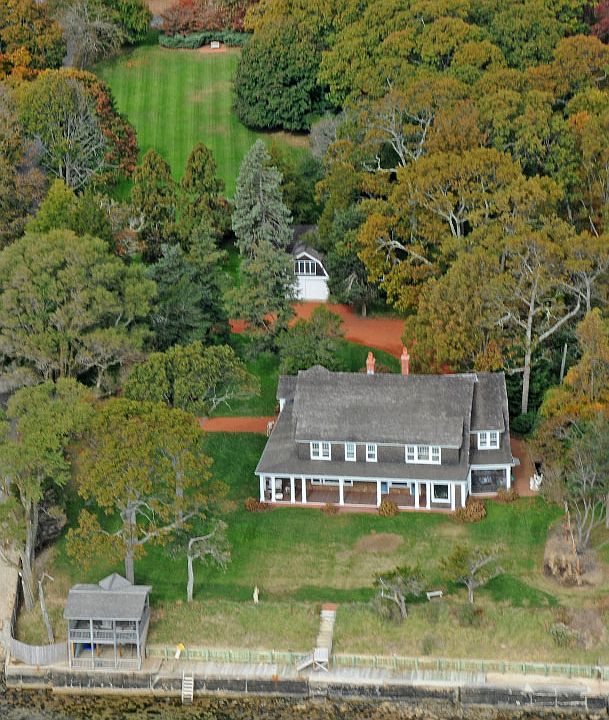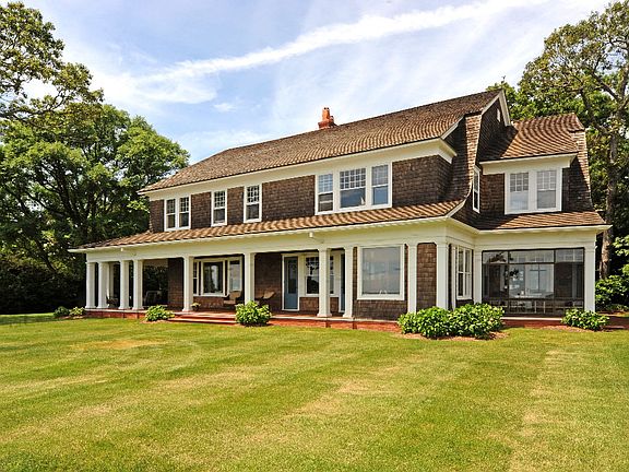 This rare and classic south-facing Summer Cottage on 3.2 lush acres has been painstakingly restored to its original splendor. It offers 5 bedrooms, 4 1/2 baths including 3 ensuite, large living room with fireplace, formal dining room, library, and a gourmet kitchen suite with laundry, butler's pantry, breakfast area, sitting area with fireplace/woodstove, and a connecting dining porch. It has bay views from nearly every room and all of its original detail intact, including intricate oak paneling. There is a porte cochere entry and a huge wraparound porch. With towering trees and sweeping lawns, the grounds boast a formal brick rose garden, a barn with artist studio, and a waterside gazebo over a bathhouse. 170' on the water is protected by a massive concrete seawall. At 18' above sea level the house is safe from any storm surge.