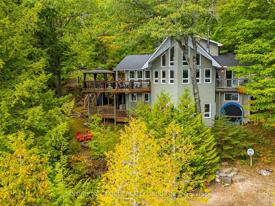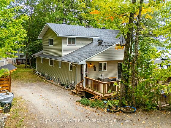 4 Bedroom Year Round Cottage with over 160 feet of waterfront on Paudash Lake! Experience the ultimate cottage life with this incredible, four-level, four-bedroom, two-bathroom retreat on the pristine shores of Paudash Lake. Main floor kitchen and dining room open up to a wonderfully large living room with vaulted ceilings and plenty of lakefront windows to enjoy the scenery. Master Bedroom has a 4-piece ensuite, walk in closet and deck that overlooks the water. Guest bedroom is on the main level with two extra bedrooms in the loft with a designated office space. With three separate living rooms, this lakefront home is perfect for large families or groups as it offers space, comfort, and spectacular views that will take your breath away.   Step out onto the large,  deck-your new favourite spot for morning coffee, sunset cocktails, or grilling up dinner -it's the perfect outdoor entertaining space! Lower Family room has a walkout where you can head down the stone steps to yet another deck with a large dock that is nicely tucked into a private bay on the lake. Paudash Lake is known for its clear waters and natural beauty, offering a peaceful yet engaging cottage experience. Located close to Bancroft, you have easy access to supplies and charming local amenities as well as many parks and ATV trails to explore. This is your chance to own a true lakeside escape where memories are made. Don't let this sought-after, move-in-ready cottage slip away!