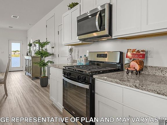 The Baldwin floorplan is a single-story home available at Pelican Lakes, a new home community in Baton Rouge, Louisiana. There are 3 exteriors to decide on, all equally impressive. Step inside this 3-bedroom, 2-bathroom residence to find 1,380 square feet of living space. The layout includes two bedrooms, a guest bedroom, and a hallway leading to another bedroom with the HVAC system and linen closet. The open concept living area features a well-equipped kitchen with shaker-style cabinets, gooseneck pulldown faucets, stainless-steel Whirlpool appliances, and 3 cm granite countertops. A large corner pantry and separate laundry room add to the functionality of the space. The dining room is conveniently located next to the kitchen, while the living room is nearby, ensuring a seamless flow between the two areas. All bedrooms are provided with cozy carpeting and a convenient closet. Whether you need a place for entertainment, organization, welcoming guests, relaxation, or fitness activities, you can be sure of feeling comfortable and content. Situated at the rear of the residence, the primary bedroom comes complete with its own en suite. The primary bathroom showcases a dual vanity, a tub/shower combination, a generous walk-in closet, a separate linen closet, and a separate water closet. Get in touch with us now and tour the Baldwin floorplan today!