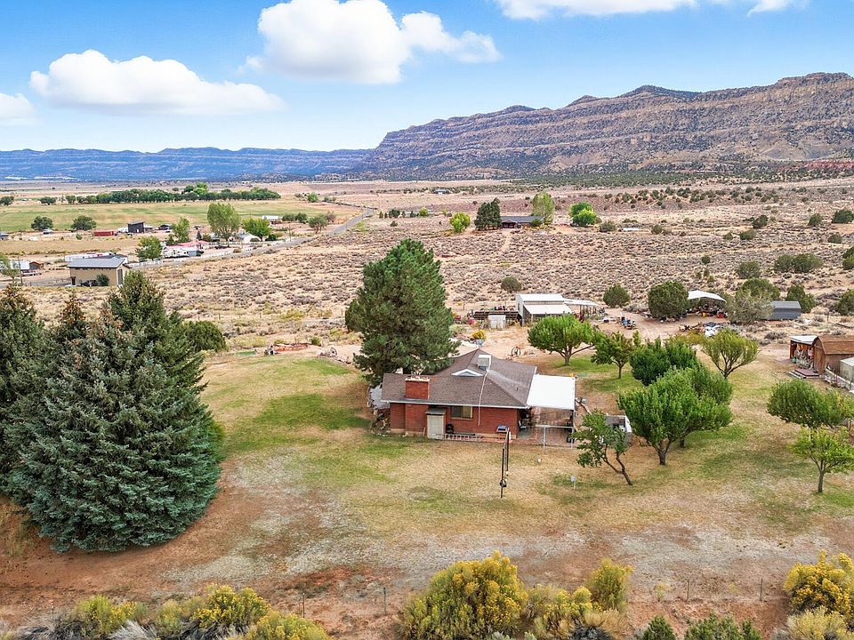 Just one mile south from Center and Main in Escalante, this 6.21-acre property offers space, self-sufficiency, endless potential, and MILLION dollars views in EVERY direction! The 5-bedroom, 3-bath home spans 2,716 sq. ft. providing a functional layout with plenty of room for family and guests. A $70,000 solar system with backup storage batteries (fully paid off) keeps utility costs low and adds long-term value. The property includes multiple outbuildings and a large shop equipped with 220 power and a fire stove, plus attached covered storage and parking. Several additional shelters provide protection from the elements and versatile storage options, while fenced raised garden beds make it easy to grow your own produce. Culinary water to home is on city of Escalante water, Water share for irrigation is part of Escalante Irrigation company, and 50% mineral rights add to the property's unique offerings. Included in the sale are a golf cart, tractor with three separate attachments that help with operations on the property, and a variety of outdoor equipment, making the property truly turnkey. With wide-open views and the convenience of being just minutes from town, this property is perfect for anyone looking for space to spread out, work on projects, and enjoy the best of country living.