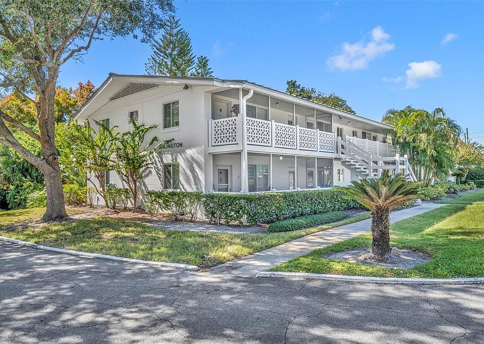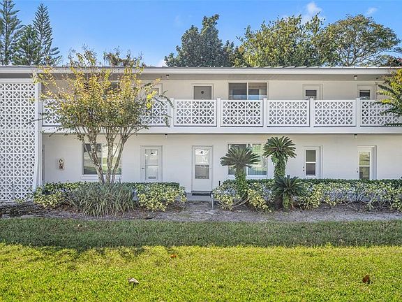 Welcome to Lake Maitland Terrace, a charming lakeside community of Mid-Century Miami Modern condos set within eleven cottage-style buildings along the shores of Lake Maitland. Residents enjoy resort-style amenities, including a recently renovated lakeside pool, fishing dock, putting green, shuffleboard courts, and a clubhouse with kitchen. This first-floor, two-bedroom, one-bath condo in the Arlington Building has been maintained by the same owner for nearly 30 years. Updates include a 2021 AC, 4-year-old water heater, newer windows and front door, and a new roof (2023–2024). The open great room flows into the dining area, and the adjacent kitchen features a 2nd entrance. Much of the interior remains in original condition, and the old carpet has been removed, providing an ideal opportunity for a new owner to update and make it their own. Additional features include one designated parking space, ample guest parking, enclosed bicycle storage, convenient laundry facilities, and racks for kayaks and paddleboards. The location is unbeatable—walk to the Enzian Theater and Lake Lily, or drive just five minutes to downtown Winter Park with easy access to I-4. Condo is being sold AS IS.