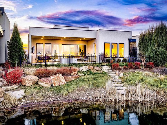 Set in a secluded and peaceful, waterfront location, this high quality, contemporary home is nestled beautifully along the Boise River. This residence lets the great outdoors inside with its transom windows and ample, East facing rear patio space. Renovare is a maintenance-free gated community with amazing water front homes and direct access to the Boise River Greenbelt. This community also features an incredible community center with a pool, workout facility, and its own walking path along the fully stocked fishing ponds.