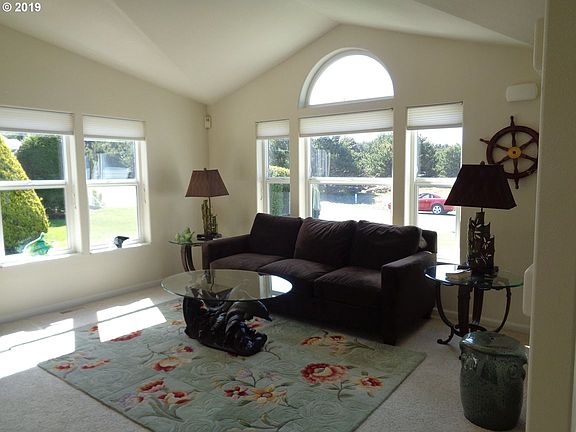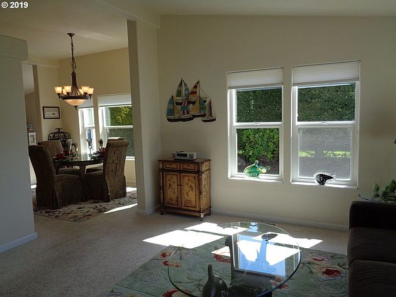 Beautifully maintained sunny home w/separate LR & FR areas, vaulted ceilings & open concept design. Updated kitchen w/new SS appliances & custom tile. Updated landscaping includes many flowering plants & whimsical touches. Large private deck overlooks wooded area & sounds of the creek beyond. 1715 SqFt 3 Bed/2 bath, over-sized 2 car garage, in a 55+ gated community near beach access golf & downtown areas. $40 monthly HOA Dues.