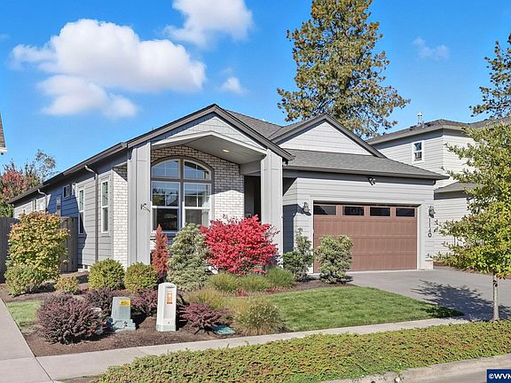 Move-in ready and beautifully finished this thoughtfully designed, single-level home features an open, light-filled layout with vaulted ceilings, a cozy fireplace, and a spacious great room with a wall of windows leading to the covered patio—perfect for year-round outdoor living. The modern kitchen impresses with quartz countertops, stainless steel appliances, a large island, and stylish finishes throughout. The primary suite offers patio access, dual sinks, tiled shower, and an oversized walk-in closet. Energy-efficient construction and smart-home features add comfort and convenience. Landscaped with native plants and fully fenced backyard. Located near Oregon State University, parks, and downtown Corvallis—this home is ready for you today!