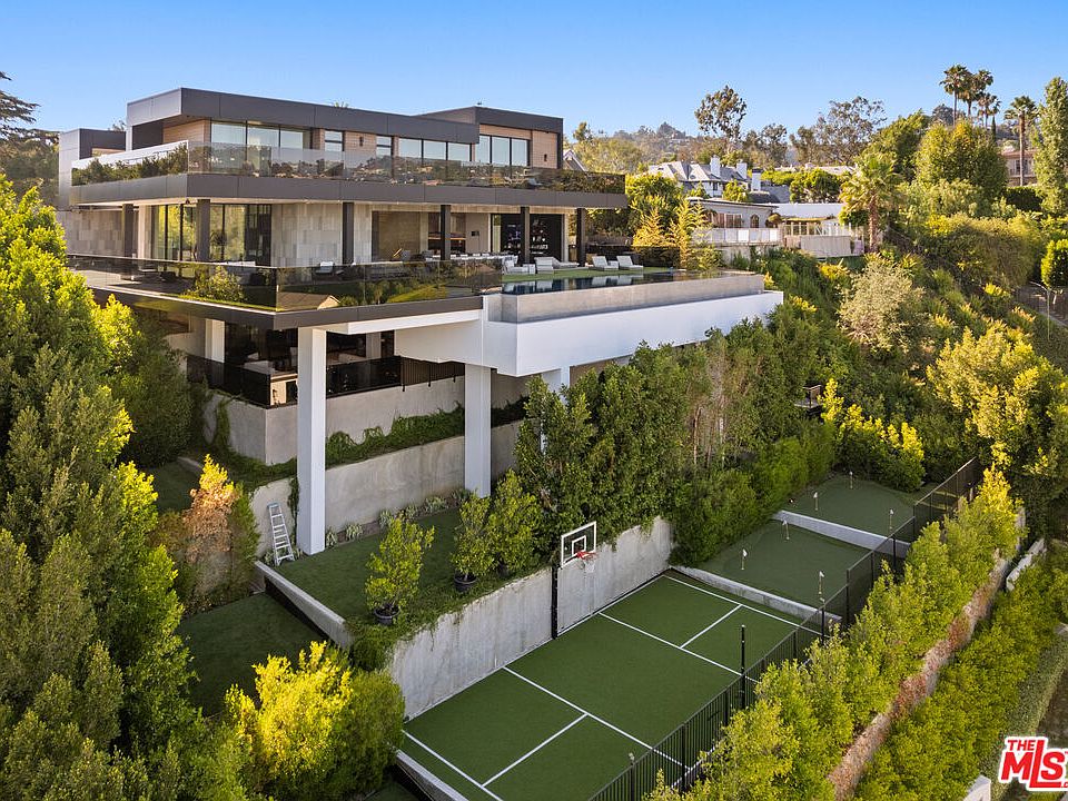 BOLD. BEAUTIFUL. AN ABSOLUTE STUNNER. Nestled in the heart of Beverly Hills' most coveted enclave, just moments from the iconic Beverly Hills Hotel, this modern estate redefines luxury living with ease, elegance, and everyday joy. 126 FOOT OF FRONTAGE! A one-of-a-kind architectural triumph, designed by the renowned visionary Thomas Schoos, this residence is a masterpiece of design and craftsmanship. Built with the finest materials and an uncompromising attention to detail, it showcases bold architectural lines, sculptural forms, and a seamless fusion of indoor and outdoor living. Sleek modernism meets warm, organic textures, creating an ambiance that is both sophisticated and inviting. The showstopping main level features an expansive open-concept living area, a chef's kitchen adorned with custom cabinetry, designer finishes, and top-of-the-line appliances. A stunning floating staircase ascends alongside a 35-foot architectural concrete wall - an art piece in itself. The home offers six beautifully appointed, sun-drenched bedrooms, each with direct access to outdoor terraces. Four bedrooms are located upstairs, one is conveniently situated on the main level for guests, and another is tucked away on the lower level, ideal for service or staff accommodations. The luxurious primary suite is a true sanctuary, complete with a spa-inspired bathroom, soaking tub, oversized steam shower, and a private coffee station. A commercial-grade, high-speed elevator seamlessly connects all levels of the home, while state-of-the-art smart home automation puts lighting, audio/video, climate control, security, motorized shades, and more at your fingertips. The lower level is a personal escape and entertainment haven, featuring a game room, private theater, card lounge, full bar, wine room, and a professional-grade indoor gym that opens to an outdoor covered activity area. Step beyond the walls, and you'll find an outdoor oasis where luxury and leisure harmonize. Perfect your swing on the private putting green, shoot hoops on the sunlit sport court, or unwind in the 55-foot infinity-edge pool and spa. Here, every day feels like a retreat - inviting you to slow down, breathe deep, and savor life to the fullest. But what truly sets this home apart is the way it feels. It's grand, yet grounded. Exquisite in design, yet effortlessly livable. Every element - from the thoughtful layout to the interplay of textures and the gentle flow of natural light - has been meticulously curated to foster a life of comfort, joy, and connection. If you've been waiting for a home that speaks to both your sense of style and your sense of soul - this is the one.