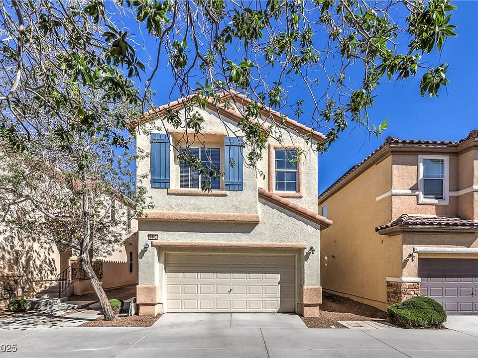 This idyllic hideaway is the home you've been searching for! Walk into your bright and spacious living room, seamlessly open to the modern kitchen—perfect for entertaining and everyday living. The open-concept main floor features wood laminate flooring downstairs, recessed lighting in the kitchen, and window blinds throughout the home, creating a warm and inviting atmosphere. The kitchen is a chef’s dream with granite countertops, subway tile backsplash, a breakfast bar, tile flooring, and all appliances included! Upstairs, enjoy a flexible loft space, laundry room with washer/dryer included, and all bedrooms! The luxurious primary suite is spacious and the primary bathroom features a double vanity and large walk-in shower. Step outside to a beautifully landscaped backyard with a patio ~ perfect for relaxing or entertaining. Located in a fabulous guard-gated community offering a community pool and spa, all just minutes from the Las Vegas Strip, airport, and premier shopping and dining!