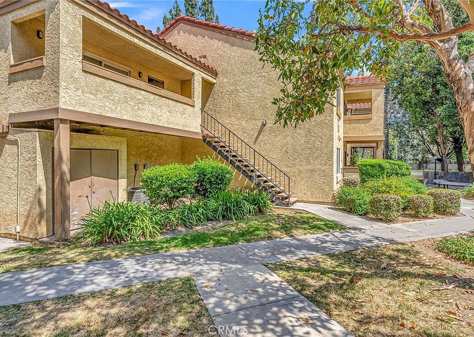 This is a wonderful, gated community with many amenities, located adjacent to the UCR campus. Upgraded 2-bedroom 2-bathroom condo with a garage. The entry to this end unit condo is at the top of the stairs and provides a lovely view of the landscaped grounds of the community from your front deck. The upgraded vinyl flooring runs from the entry and throughout all of the common areas of this home. The spacious living room has an abundance of natural light and the large sliding glass door provides access to your front deck, expanding the living space and allowing you to enjoy the California lifestyle. The dining room is adjacent to the kitchen that has warm tone finish cabinets, granite counter tops and stainless-steel appliances. The full bathroom is conveniently located down the hall across from both bedrooms. Each bedroom is a good size and can accommodate queen or king beds. The private suite has a 1/4 bathroom adding to the convenience for household of multiple people and it's own private balcony. The condo has a one car garage that is located just below the home. The location is wonderful for those wanting to live close to the Campus or Riverside's Fantastic Downtown area, convenient for computers with easy access to several freeways. The community offers, a pool as well as many other amenities.