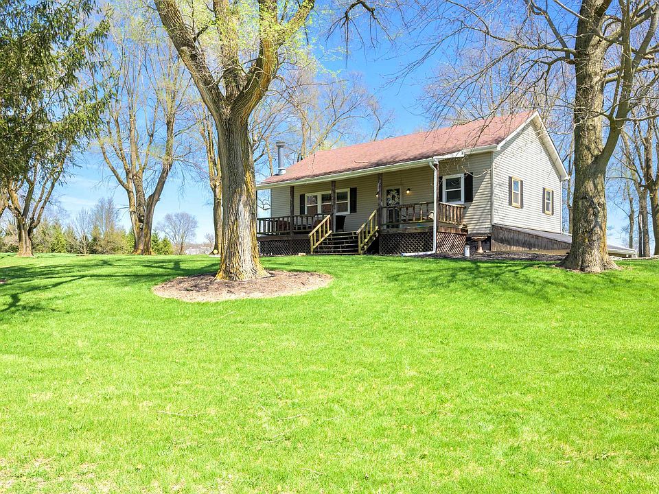 Welcome to your dream farmhouse property! This beautifully updated 3 bedroom, 2 full bathroom farmhouse is situated on a serene 5 acres of land that offers ample room for outdoor activities and relaxation. As you step inside the house, you will be greeted with a warm and inviting interior that boasts an open concept modern farmhouse design. The spacious living room is perfect for entertaining guests or relaxing with your loved ones around the cozy fireplace. The adjacent eat-in kitchen offers a walk-in pantry, stainless steel appliances, a large farmhouse sink, and provides ample space to gather for meals. The main floor also includes two bedrooms and a full bathroom, providing comfortable living for family members or guests. Downstairs, in the finished basement you will find new flooring, drywall and paint with a second kitchen, perfect for those who love to entertain or those who desire a separate living space. The basement also features a large open concept recreational space and family room area, a bedroom with built-in dressers, and another full bathroom with a double vanity and new toilet and shower/tub combo. Additionally there is a mudroom with exterior access for convenience. This basement provides plenty of room for everyone to spread out and enjoy their own space. Outside you will find a total of four outbuildings, including the two-story barn with a metal roof and plenty of room for animals and storage, next to a beautiful pasture area that is ideal for grazing animals. This barn is perfect for those who want to raise their own livestock or work on various hobbies, and is a charming addition to this mini-farm. In addition, there is a second barn, chicken coop and milk house. This mini farm is a true gem, offering a unique blend of modern amenities and country living.The peaceful and serene surroundings provide a perfect backdrop for outdoor activities or simply relaxing on the front porch. Don't miss your opportunity to own this beautiful property and create your own mini farm paradise! You're going to love it out here!