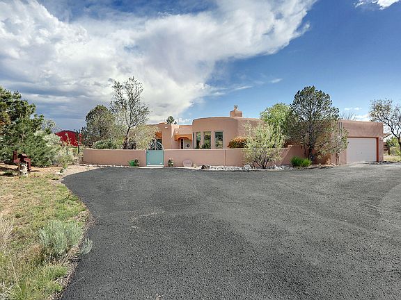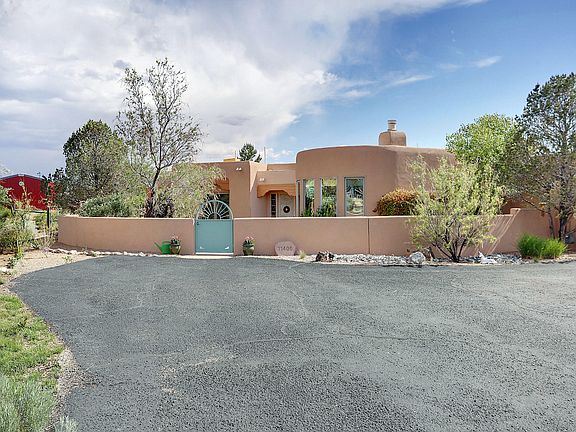 What a beauty! Custom designed w/ quality & attention to detail throughout. Gorgeous view of our beloved Sandias from the curved wall of windows in the den, living area & guest suite. Recently refinished elegant cherry wood floors! Kitchen is open to den w tons of natural light! New stunning Camcria Quartz countertops blend beautifully w/ the new tumbled stone backsplash. Kitchen also features cherry cabinets, stainless appliances, gas stove & 2 pantries. Exquisite formal dining room. Split master w patio access & elegantly updated bath. Claw foot tub w separate shower w glass block accent. Huge walk in! 2nd master is on opposite side of home w private patio. Lovely courtyards w fish pond, Kiva fire place, & gorgeous views! Security system and solar panels (2017) are owned and will convey