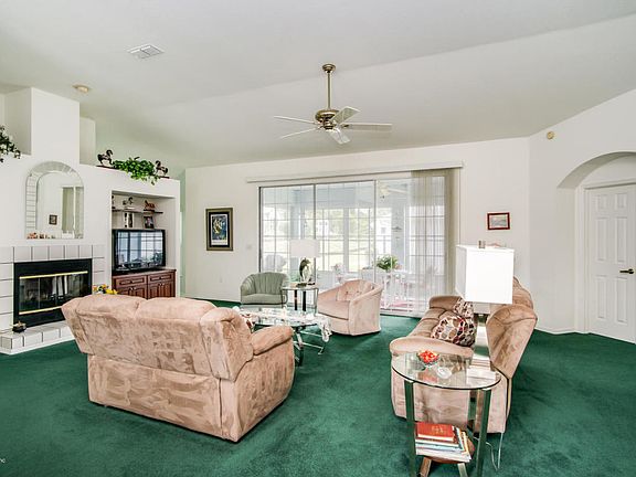 Meticulously maintained 3 bedroom 2.5 bathroom San Tropez model home in the highly desired Oak Run Country Club. As soon as you enter this home, you are greeted with a large open floorplan with high ceilings and ample space! Oversized sliders provide natural light and lead to a large outdoor lanai with slate flooring and upgraded vinyl windows perfect for entertaining or enjoying your morning coffee. The upgraded kitchen boasts cherry oak cabinets, corian countertops, tiled flooring, stainless range, microwave and dishwasher. The oversized master bedroom features tray ceilings and a large master bathroom complete with dual sinks, garden tub and separate shower. In addition to ample space, there are closets all throughout this home and a large separate inside utility. AC was replaced
