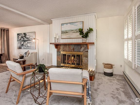 Live your best Island Life in this spacious one-level, 3bd/2ba in the heart of Rolling Bay! Built in 1978; $65K remodel in 2004 by prior owner this home shines w/newer windows, doors, millwork, front deck, soffits, siding, flooring, fireplace facing, gutters, oak cabinets, motorized blinds-sunroom, Kohler walk-in style tub in primary bath. Large east facing windows provide gorgeous views of Puget Sound & Cascade Mts. Step out from your grand sunroom onto your deck w/built-in benches and enjoy the fresh air. Partially fenced-in yard is a great place to garden; Create a beautiful terrace garden on the sloped side. Interior freshly painted. New carpet. 2-car garage. Rolling Bay Winery, Carly’s Rolling Bay Café, & Via Rose all under 5min walk.