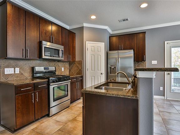 This stylish stand-alone condo has no shared walls! Premium unit with end location for ease of access to additional parking, proximity to the park, and rare large walk-out patio from the kitchen! Excellent floor plan with three bedrooms, two full baths, one half-bath, game room, and laundry room. Vaulted ceilings, open kitchen, granite counters, crown molding, wrought iron balusters, attached two car garage, flagstone patio with built-in seats and wrought iron fence. The downstairs primary suite offers a built-in safe, ceiling fan, crown molding, tall windows, frameless glass shower, double vanity, granite counters, and a large walk-in closet. The spacious secondary bedrooms and game room are located upstairs and they all offer ceiling fans, high ceilings and crown molding. This development offers a community pool, plus Brushy Creek Lake Park is within walking distance. Convenient proximity to Hwy 183, Toll Road 45, 1431, Apple, restaurants, and schools. ITEMS INCLUDED: lawn maintenance, three TVs, refrigerator, and LG washer and dryer! Please note the following: there is NO smoking in this unit or on the patio. There's no fencing around this home with the exception of the patio. Privately managed unit with highly responsive, often same-day resolution of maintenance and repair issues. Zoned to Rutledge Elementary, Stiles Middle School, and Vista Ridge High School.