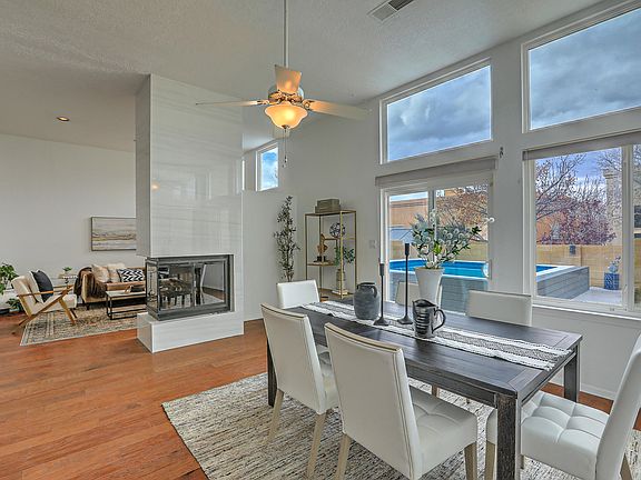 Welcome to this beautiful modern light filled Academy area home with 3 bedrooms and an office space! You'll enjoy the elegantly updated kitchen with quarts counter tops and stainless steel appliances. The bathrooms are updated as well. There is a new TPO roof, newer stucco, wood and vinyl flooring and newer carpet! The multi sided gas fireplace adds the perfect cozy touch to your main level living area and dining room. The spacious primary bedroom has a double vanity, large walk-in closet, and a garden tub and separate shower. Don't forget about the tranquil backyard with a pool and fire pit! All of the downstairs windows also have automatic metal security covers. This home is a must see!