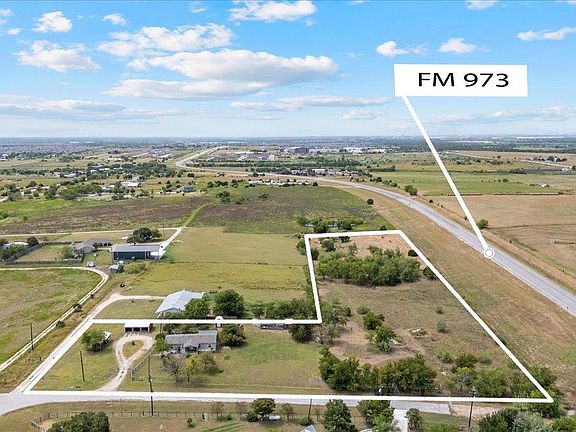Positioned at the high-visibility intersection of FM 973 and Schmidt Lane, this 5.25-acre property offers exceptional opportunity in one of the fastest-growing corridors in Central Texas. With over 800 feet of frontage along FM 973 and 517 feet of frontage on Schmidt Lane, the property provides maximum exposure and accessibility. Located within the Manor ETJ and designated as a “Commercial Corridor” in the City of Manor’s future land use plan, the tract is ideally suited for large-scale commercial development including big box retailers or multi-tenant commercial uses. The land is level, buildable, outside the floodplain, and features no restrictions. Aqua Water supply is available, and the property also includes a 1,500 sq ft home and well-maintained outbuildings that provide rental income potential while you plan future development. Just 12 minutes south of Samsung’s new semiconductor facility and 24 minutes north of Tesla’s Gigafactory, this rare small-acreage tract on FM 973 offers endless investment and commercial possibilities.