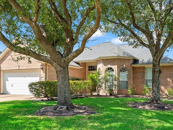 Welcome to 11402 Bucks Bridge! This beautifully maintained one-story brick home offers timeless curb appeal and a spacious, open layout. Inside, you'll find high ceilings, abundant natural light, arched details, and a generous living/dining area. The kitchen features ample counter space, stainless steel appliances, and a breakfast bar that opens to the family room with backyard views. The private primary suite boasts a spa-like bath with dual sinks, soaking tub, and separate shower. Secondary bedrooms are well-sized, and the versatile study/flex room provides extra space for work or play. Step outside to a covered patio and large backyard shaded by mature trees. Conveniently located near schools, shopping, dining, and with easy access to Hwy 6. Landlord does not allow subletting, Airbnb, or short-term leases.