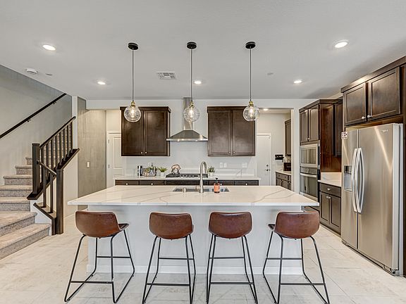 *Partially furnished with barstools, wall mounted LG tvs, and patio/balcony furniture* an attached oversized 2 car garage has Epoxy floors, ceiling storage and is fully finished. Located on a green belt within the neighborhood and only steps from the community pool. Washer/dryer/fridge included