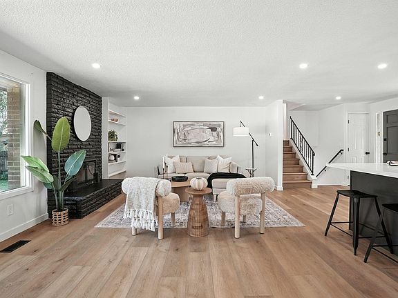 This beautifully remodeled Fairwood home sits on an oversized corner lot and showcases a complete interior refresh—new flooring, carpet, paint, and a stunning kitchen with quartz counters, a large island, gas range, and stainless steel appliances. The main level features a bright living room with a statement fireplace and adjacent dining space, with access to a covered patio for seamless indoor-outdoor living. Upstairs offers three bedrooms, including a stylish primary suite with a beautifully tiled shower. The lower level includes a spacious second living area with outside entry to the second covered patio, a fourth bedroom, and third bathroom with laundry hookups. Enjoy peace of mind with a new furnace and AC, RV parking, an attached two-car garage, and mature landscaping. Located in the desirable Mead School District near parks, shopping, and more. 13-month home warranty included!