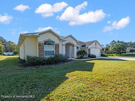 Under contract accepting backups. Need serenity now? Discover your haven in this remarkable pool home in Woodland Waters! Sitting pretty on just over half an acre, there's a no-build lot next door, assuring your peace and privacy. Crafted by Pastore Custom Builders in 2005, this Antigua model home embodies timelessness and quality craftsmanship. An added bonus? The AC was just replaced in 2021 and a new roof was put on 12/2023! The moment you walk in, you're greeted with a spacious open floor plan. Think double door keyless entry, grand pillared arches, and a double tray ceiling in the formal living room. Vinyl plank flooring in the dining room and kitchen adds a touch of elegance. Plus, you've got a handy built-in desk in the hallway for work, study, or a Pinterest-worthy craft space. If you love to cook or just adore an open, roomy kitchen, you're in for a treat! Flat wood cabinets, sleek stainless steel appliances, and a walk-in pantry make it a chef's paradise. A charming eating nook overlooks the lanai for a lovely view with your morning coffee or tea. Triple sliders in the sizable family room allow in tons of natural light, creating a bright and airy ambience that's ideal for entertaining in style or unwinding in the sanctuary of your own abode. Set in a split-bedroom floor plan, the primary bedroom offers refuge after a long day with access to the lanai, dual walk-in closets, and a lavish ensuite bathroom featuring dual sinks, a jetted tub, and a generous walk-in shower. Doing laundry in a hot garage is a thing of the past when you have a dedicated utility room with a laundry sink and cabinets for extra storage. An oversized garage includes a built-in workbench so you can tinker away to your heart's content. Ready to take the fun outside? That's where you'll find the 15x30 in-ground pool, added in 2018. This one has a saltwater system - no more heavy chlorine smell - and 2 LED color changing lights. It's even pre-wired for a heat pump, should you choose to add one in the future. The covered lanai and deck are lined with stylish pavers, which extend beyond the screen enclosure to the open patio. Encircled with concrete brick, this sun-drenched setup includes a fire pit for cooler evenings - s'mores, anyone? Chill and grill during the warmer months, and enjoy dining al fresco with a view of the beautifully landscaped yard, which is equipped with a 10 zone well pump irrigation system. Woodland Waters is a sought-after community known for its natural beauty, upscale living, and low HOA fees. It's a prime location for those who seek a tranquil retreat without sacrificing city conveniences, since it's close to schools, shopping, and dining options. Residents can also discover the magic of mermaids and the crystal-clear waters of the river at Weeki Wachee Springs State Park just minutes away. Stunning Gulf Coast beaches at Honeymoon Island and Clearwater are an easy drive down US-19, as are the famous sponge docks of Tarpon Springs and the culture of downtown St. Petersburg. Don't miss your chance to make this incredible property yours. Call us today for your private tour - let's make your dreams of Florida living come true!