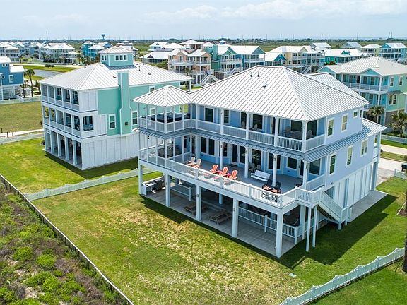 Amazing home that will appeal to all your needs. There are unobstructed views of the Gulf through the beautiful "bay of windows" and boasts 5bed/5bath, granite counters, Thermador appliances, wine cooler, ice maker, custom lighting, 2 masters(one down) and opens to the 2nd floor deck with an 8 person hot tub, wet bar and entertainment area. Other items that allows your beach time " no fuss" are the tankless H2O, elevator, 2 laundry areas, covered & non covered deck areas on lower level. Exterior trim of the home was painted in 2018. Beautiful wood tile flooring adds to the warmth of the home and coastal colors adds to the ambience of beachfront living. Foundation was started in 2015 but completed in 2016 Be prepared to be "WOWED". The BEST is it comes FULLY FURNISHED!!!! * master bedroom picture over bed, telescope, and exterior patio furniture on 2 & 3 floor don't convey.