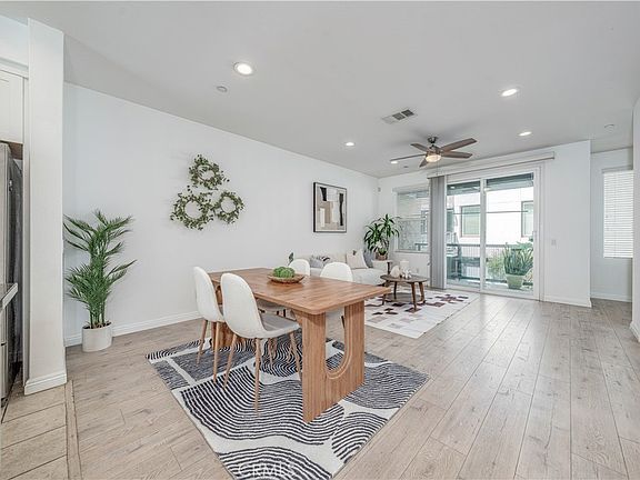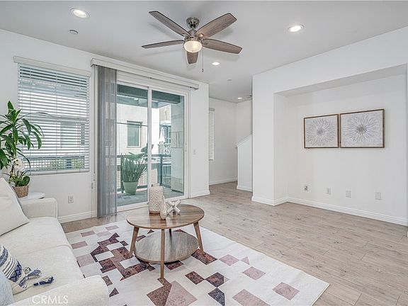Nestled within the picturesque gated community of VuePointe, this modern three-story townhome exudes sophistication and comfort, featuring exquisite vinyl plank flooring that flows seamlessly throughout. As you enter the first floor, you're greeted by a versatile den, perfect for use as an additional bedroom or a cozy home office. Step outside to discover a charming walk-out patio, ideal for sipping your morning coffee or unwinding in the evening breeze. Ascend to the second floor, where natural light floods the living room, creating a warm and welcoming atmosphere. The dining room seamlessly connects to the kitchen, adorned with elegant granite countertops and contemporary backsplash tiling, showcasing a large island that doubles as a hub for casual dining and entertaining. This level is thoughtfully designed with a convenient half bath, a laundry room, and an additional patio area that beckons for al fresco dining. On the third floor, you’ll find the serene primary bedroom, a luxurious retreat featuring a beautifully upgraded en suite bathroom complete with modern fixtures, and not one, but two spacious walk-in closets for all your storage needs. Two additional secondary bedrooms provide ample space for family or guests, offering flexible living options. Enhancing your lifestyle, this property boasts an attached two-car garage for easy access and added convenience. The community itself is a treasure trove of amenities, featuring lush open spaces, a dog park for your furry friends, a picnic area for leisurely gatherings, a playground for the little ones, and a cozy firepit for evening get-togethers. With a low HOA fee that includes trash collection, and the added bonus of quick access to freeways as well as entry to the express toll lane to Downtown LA on the 10, this townhome offers an exceptional blend of luxury, convenience, and community living.