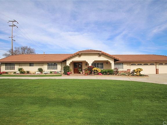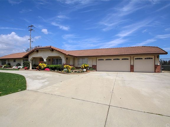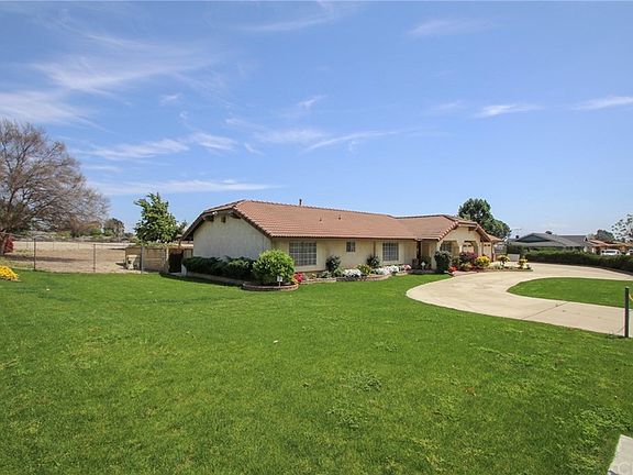 Country Ranch Custom Built Single Level Gorgeous Horse Property Home in Chino. This flat, almost acre, home has much to boast about with Four bedrooms and three baths with an extra large Country kitchen with pantry overlooking patio and spa. Fully fenced Yard with automatic sprinklers keep this pristine yard green. 40 foot patio with block wall with a ribbon of brick brings privacy for in ground delightful spa and hardly ever used BBQ. Drive up to the circular driveway with ample parking and attatched three car garage leads you out to this MD Barn. The barn is a 6 stall with 2 being hooked up with automatic water feeder and the other s turned into an office. The Family room has a fireplace and stone on walls and open to the living room with bar and sink and wine frig. This is a great entertaining home with the feel of a Countryside - no street lights or sidewalks.