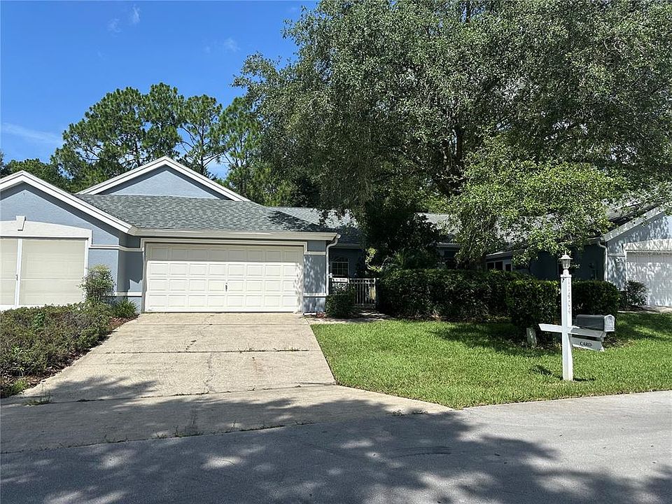 The sought-after Chesapeake floor plan in the Timbergate neighborhood features a villa with 2 bedrooms, 2 baths, and a den that could serve as a 3rd bedroom. This villa is maintained, including mowing, fertilization, irrigation, pressure washing, and painting every 5 years. Roof 6/2024 HVAC 2018.The adorable courtyard entry leads you into this charming 2-bedroom, 2-bathroom home with a den. This villa features a 2-car garage. The home has a mix of tile, laminate, LVP, and carpet flooring. The spacious kitchen offers plenty of cabinets and an eat-in nook. The master bedroom boasts a window sitting area, a walk-in closet, and an en-suite bathroom with a step-in shower. A triple slider leads to the screened lanai. The den is equipped with sliding barn-style doors. Bedroom 2 has a walk-in closet and overlooks the courtyard. The second bathroom features modern touches and a solid surface counter/sink combo. Experience the vibrant atmosphere of a 55+ community featuring an 18-hole golf course, the delightful Oak Room Bar & Grill, a convenient driving range, and numerous recreational activities. Relax and socialize with access to six pools, five whirlpools, a well-stocked library, and dedicated spaces for billiards, cards, and ceramics. Outdoor enthusiasts can enjoy pickleball, shuffleboard, bocce ball, and quality time with their pets at the dog park. The community also offers a variety of clubs, ensuring there’s something for everyone.