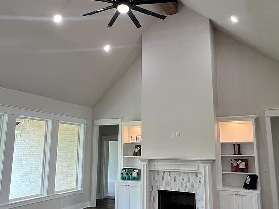 New Construction Home Located at End of Cul-De-Sac on 0.975 Acres! The entryway leads to an open concept living room, kitchen, and dining room, all showcased with beautiful bright windows. Modern color scheme, and consistent counter tops throughout home. The living room has a gas fireplace, vaulted ceiling, built-ins, and access to the covered patio in the backyard. The kitchen features island with prep-sink, front storage, and built in cutting board. In addition, the kitchen also has double ovens, gas cooktop with pot filler, and a kitchen sink that is located by a large window overlooking the backyard. Conveniently located by the kitchen is a massive pantry with built-in drawers, and outlets. The dining room is open to the living room, but also has pocket doors. Primary bedroom is separate from the three guest bedrooms. The primary bedroom has a private en-suite bathroom attached. Private en-suite bathroom has separate vanities, separate tall shower, separate tub, and private water closet. Primary closet is attached to the private en-suite bathroom, and comes with built-ins, large mirror, and is also attached to the laundry room. This is a sough-out feature of modern homes. Two guest bedrooms have shared access to a full bathroom, and a guest bedroom has a private en-suite bathroom attached. All that is missing to make this house a home is YOU!