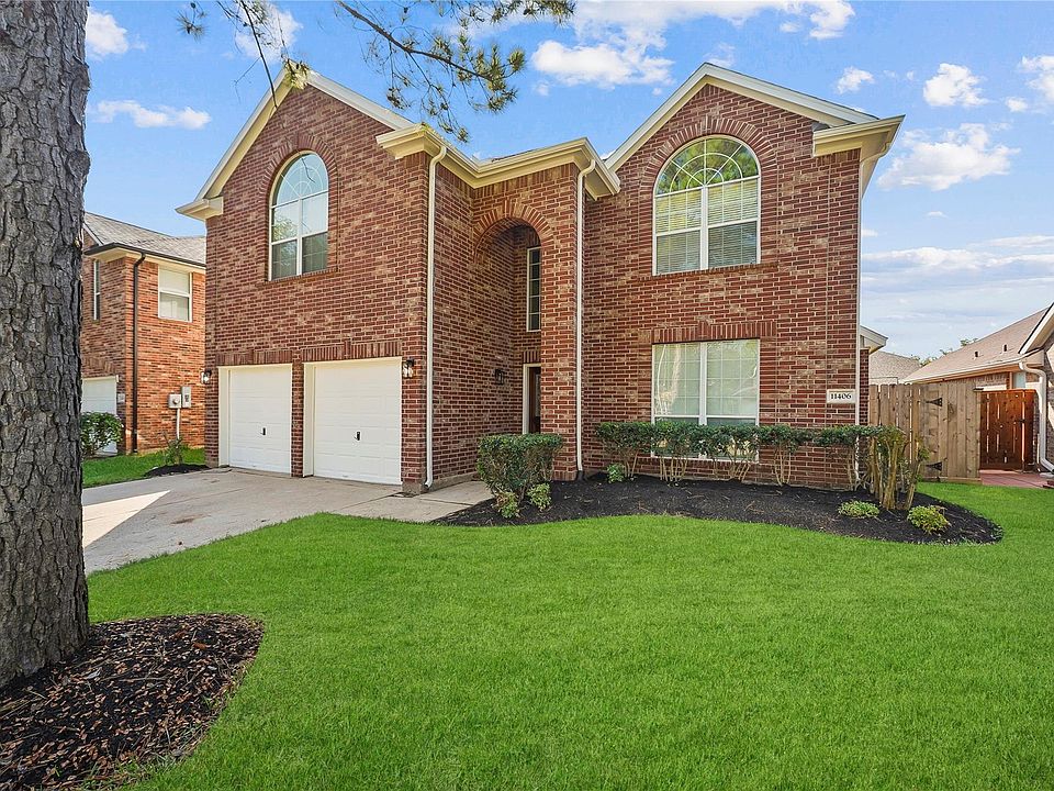 Welcome to 11406 Summit Bay Drive, a beautifully maintained two-story home in Shadow Creek Ranch. This spacious 4-bedroom, 2.5-bath floor plan offers inviting living areas filled with natural light, fresh interior and exterior paint (Sept 2025), and a new roof (February 2025). The kitchen opens to the family room with vaulted ceilings and a cozy fireplace—perfect for entertaining or relaxing. Upstairs includes a media/game room plus a flex space ideal for a home office. The private primary suite downstairs features a large bath with dual vanities, soaking tub, and separate shower. Enjoy outdoor living on the patio overlooking a fenced backyard. Conveniently located near neighborhood parks, pools, and amenities within Alvin ISD, with easy access to shopping, dining, and major highways.