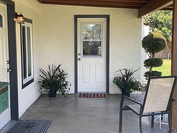 Fantastic opportunity to own this turn-key home with quality finishes in a highly desired Downey neighborhood! This thoughtfully remodeled home features new energy efficient windows, recessed lighting in living/dining room and kitchen with fresh paint throughout. Beautiful and durable water resistant LVP flooring flows through every room. New shaker style custom cabinetry in the kitchen provides ample storage and are complemented with beautiful quartz countertop and marble picket backsplash and includes all new appliances. Expansive living/dining room is great for entertaining and opens to a large covered patio! One bedroom features large walk-in closet with mirrored doors and remote ceiling fan and the other bedroom has mirrored closet doors, remote ceiling fan with a connecting half bath featuring new vanity with brushed nickel faucet/hardware, lighting and toilet, and also opens to an intimate porch area. Completely remodeled hall bathroom features new vanity with marble counter, brushed nickel faucet/ hardware, lighting, toilet, extra storage and shelving for all your needs along with a new bathtub and coordinating shower tile in separate area offering privacy. This extended yard features sprinklers throughout offering lots of entertaining possibilities. Additional storage in oversized single car garage offers full laundry facilities! Buyer to verify all facts and features