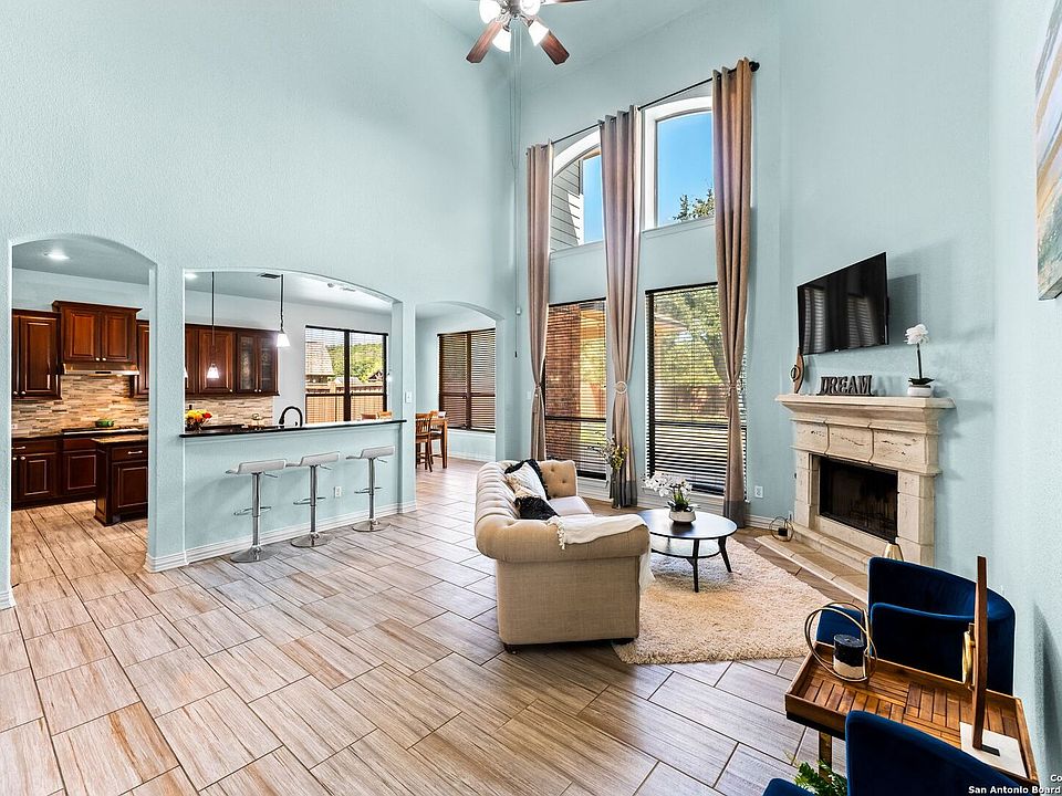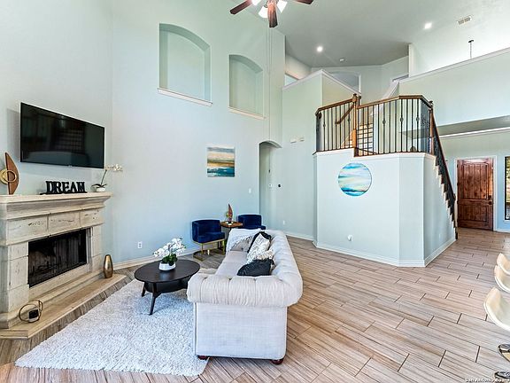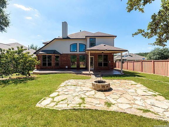 Come home to this wonderful corner lot house Located in the Helotes area. All brick traditional front porch entrance welcomes you to this 4 bedroom 3.5 bath with a spare office space that was previously being used as a second master down. Large, Very High elegant ceilings and large windows allows all the natural light to enter in this spacious living room that is complete with an all wood/gas fireplace. Fully equipped kitchen with tall 42" cabinets complete with all stainless steel appliances, granite countertops and a gas range stove top. Full Master Suite w Luxury bath-his/hers walk in closet, garden tub and separate shower. Wooden large staircase leads to an upstairs with its full sized 2 bedrooms, game room an entertainment/movie area. It has its own Water Softener. Its Private fully fenced Backyard w/Covered Patio ready for those BBQ nights. Tuff Shed is also included. Beautiful and perfect home awaiting for you and your family. **Seller willing to paint to color of your choice prior to closing.**