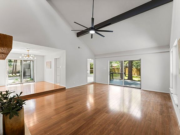 WELCOME HOME! This LUXURY LISTING is located in the heart of GROGANS MILL and completely redesigned with LUXURY and convenience. The home features 3 bedrooms, ONE STORY, Primary on 1st floor with a LUXE spa en-suite with designer tile and gold accents. The re-designed CHEF's kitchen features a SPACIOUS island with a cooktop, ample cabinet STORAGE, and NEW backsplash. NEW bar with CUSTOM wine fridge and backsplash is another 1st floor feature. The family room boasts a STUNNING NEW stack-stone Austin FIREPLACE with CEDAR mantel, NEW ceiling fan, and HARDWOOD floors. Fully-fenced backyard. LOCATION, LOCATION, LOCATION!! This home is located in the front of The Woodlands. Dining, Arts, Medical, and International Airport.