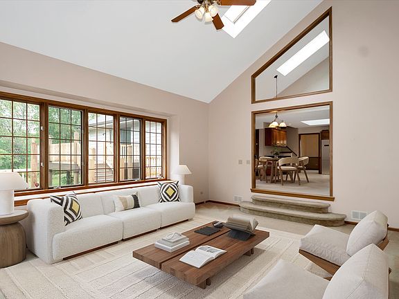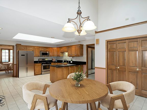 For the first time ever, this beautiful brick step ranch is now available. Situated on a tranquil and wooded half-acre lot in the highly sought-after Old Castle Woods of Mokena, this property boasts four generously sized bedrooms, 2.5 baths, an open concept kitchen with a large eating space, as well as a formal dining room. The primary suite features two separate closets, 12' ceilings, an ensuite bath with a dual vanity, soaker tub, toilet closet, and separate stand-up shower, with direct access to the brand new expansive 2-level deck completed in August 2024. The home also includes a classic sunken family room with 19' vaulted ceilings and gas starter fireplace, a 3-car attached garage with 8' doors, an unfinished basement with 8' ceilings and lots of potential, and a huge stand-up crawl space with built-in shelving for maximum storage. Old Castle Woods neighbors the Hickory Creek Preserve to the South, West, and East, offering miles of hiking, biking, and skiing trails, as well as picnic areas. Additionally, it is conveniently located just 1 mile from Mokena Metra station for a quick commute and near Mokena's Park 'N' Bark Dog Park for furry friends to enjoy.