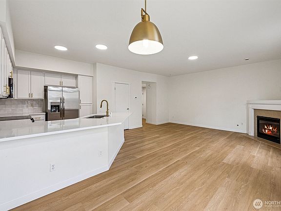 Affordable home in great location close to 512. This 1520 square foot home is located on a corner lot in the gated community of Village Commons. Community offers playground, basketball & community center great for gatherings. Home offers 9ft ceilings, open concept living, dining & large kitchen with bar area. Gas fireplace, hardwood flooring, updated throughout including cabinets, appliances & fixtures. Huge updated Primary Suite with dual sinks & walk-in closet. Fully fenced back yard with patio. 2 car garage