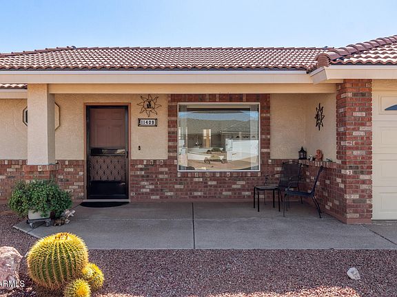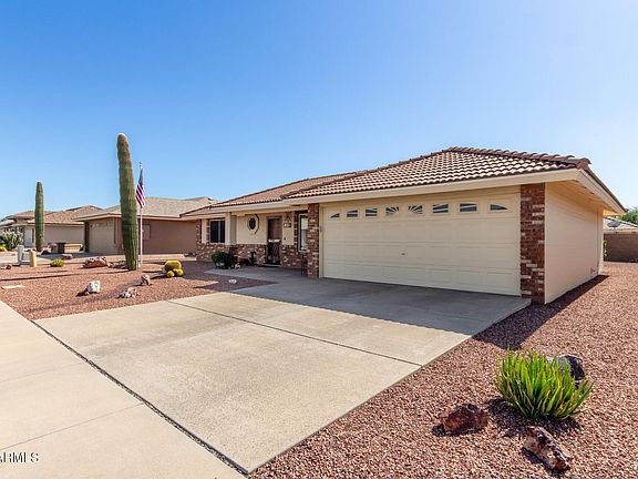 Become the proud owner of this lovely 2-bedroom home in the 55+ Community of Sunland Springs Village! You're welcomed by a 2-car garage, charming brick accents, a low-maintenance desert landscape, and an inviting front patio. Discover a tranquil living room with soaring vaulted ceilings, a soothing palette, blinds, and soft carpeting underfoot. The well-appointed kitchen comes with wood cabinetry with crown moulding and built-in appliances for an enjoyable cooking experience. The cozy main bedroom features double built-in closets with mirrored doors and an ensuite with dual sinks for an efficient daily routine. Unwind at the end of a long day in the backyard, which offers a covered patio for enjoying a captivating book or a refreshing drink. Don't miss out on this fantastic opportunity!