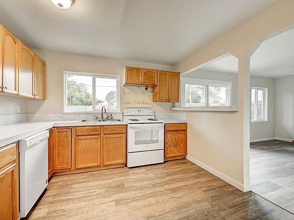 Newly remodeled 3-bedroom home with luxury vinyl plank flooring, a recently remodeled bathroom, and kitchen. The home has off-street parking, washer and dryer hookups, and a large yard.