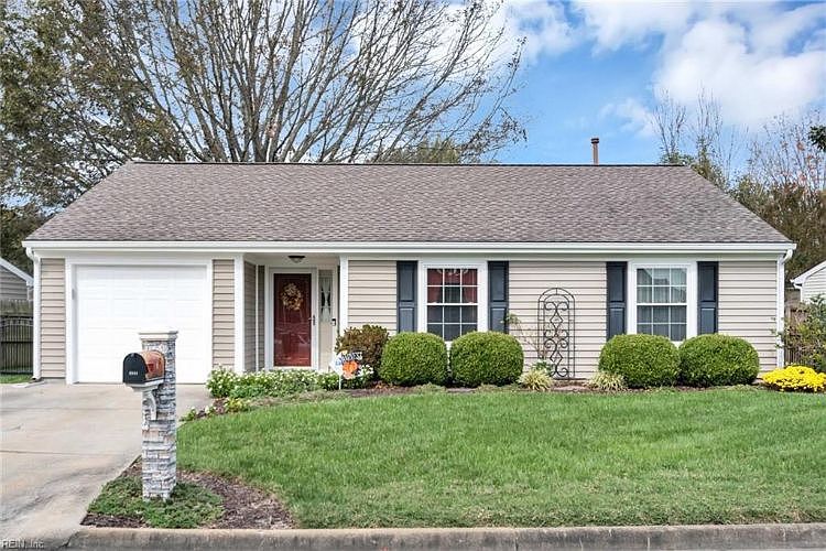 Beautiful 3 bedroom single family home waiting for you in the sought after neighborhood of Upton Estates. This home boasts the pride of only 1 owner. Updated kitchen and guest bathroom. Newer windows, roof, vinyl siding and HVAC. Family room with view of spacious backyard great for entertaining. Shed equipped with electricity may be used for storage or workroom. Conveniently located to Virginia Beach oceanfront, shops, restaurants, movie theater, interstates and Military bases.
