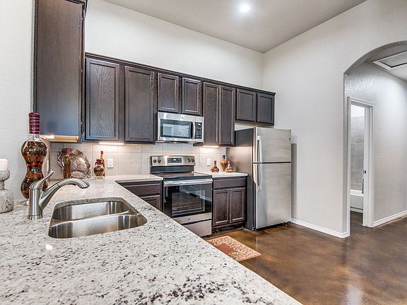 Beautiful duplex in Seguin with convenient location as it is located 30-minutes from San Antonio and 20-minutes from New Braunfels. This Luxury duplex has a spacious and contemporary design. Enjoy the lofted living space with 11 ft. high ceilings in the living room and kitchen. Concrete stained flooring throughout the home. This home does not have any carpet! Open kitchen with recessed lighting, granite countertops, 42 inch cabinets, and backsplash lighting. Stainless Steel appliances included as well as refrigerator. Window blinds included. Ceiling fans in all three bedrooms, living room, and back covered patio. Fully fenced back yard & a two car garage ready for your use. NO PETS. Move in ready today!