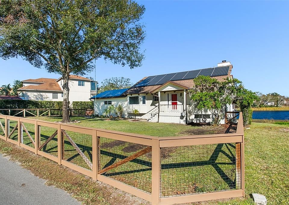 One or more photo(s) has been virtually staged. **This property qualifies for a closing cost credit up to $5,500 through the Seller’s preferred lender.**SOLAR PANELS TO BE PAID OFF AT CLOSING**Don’t miss out on the opportunity to own this 3-bedroom, 3-bathroom home located directly on Lake Hiawasee! With water views from almost every window inside this home, you have the perfect backdrop year-round! Through the front door you’re welcomed into the formal dining room on the right with the open kitchen to the left. This beautiful space features granite countertops, stainless steel appliances, and a prep island off to the side with pristine water views outside while cooking. Shiplap vaulted ceilings with beams enhance this room with skylights at the top drawing in the natural light with brand new luxury vinyl flooring. At the back of the top floor is the living room with the fireplace tucked up to the side and sliding glass doors leading out back. The primary bedroom is located on the 2nd floor as well, this grand room off the kitchen offers a walk-in closet with custom built ins and spa like ensuite. Step out to the balcony with serene views of the lake and expansive space to take it all in. Make your way downstairs to find the spacious family room. Through the hallway are the 2 remaining bedrooms with a beautifully updated jack n jill bathroom in between with intricate tile work throughout. Sliding glass doors lead you outside to the covered patio that extends to the screened patio that is home to the private pool that is currently chlorine but also set up to be salt water if desired. This amazing space is what dreams are made of where you can float in your pool all summer long, sit by the fireplace at night, or set out on the lake for a calming sunset cruise. Sitting on just under ½ of an acre with no HOA this home truly checks off the boxes and more! The location is unbeatable, you feel like you’re in the countryside, but you are less than 5 minutes to Publix and shopping, 7 minutes to Metro West Golf course, 10 minutes from Universal Studios and 15 minutes from Downtown Orlando. Schedule your private showing today for this lakefront lifestyle!