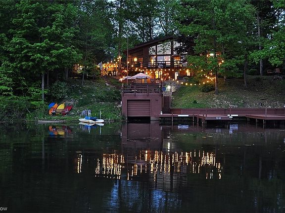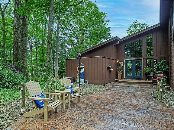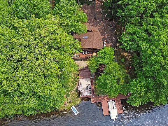This is the one you have been waiting for! Lake living at its finest, waterfront triple lot with over 220' of shore. Stunning lakefront contemporary home with deep setback. Enter the double stained glass doors into the dramatic interior spaces with vaulted ceilings. Large open kitchen with custom concrete counters, stainless appliances, huge dining counter, island with cooktop. Cozy fireplace in great room, open dining room off the gracious foyer. Large primary bedroom on first floor w/ gas fireplace, seating area, big walk-in closet, huge en-suite bath w/ zero-entry shower, double custom vanities, large window overlooking private garden. Laundry room/mudroom & full bath are located just off the attached garage. Upstairs there are two spacious bedrooms, a full bath & office. Great storage and recreation space in the lower level walks out onto patio with hot tub & outdoor shower. Multiple outdoor living areas....custom tiki bar with outdoor kitchen in the sand, fire pit patio area, larg