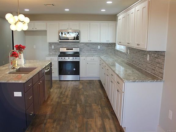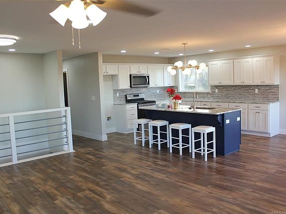 No Stone Left unturned. You'll love this total Reno 4 bedrooms Home. Located on the Hillside of Country Club Rd with amazing views overlooking Muskogee with quick access to the Muskogee Turnpike. This 4 bedrooms 3 full baths ranch style home is a total renovation sitting on 1 acre lot that overlooks East Muskogee. House has an open floor plan with modern kitchen and oversized island, large scenic windows, finished basement with 1000 sqft garage/shop. New HVAC, roof, flooring granite and more. Agent/Owner