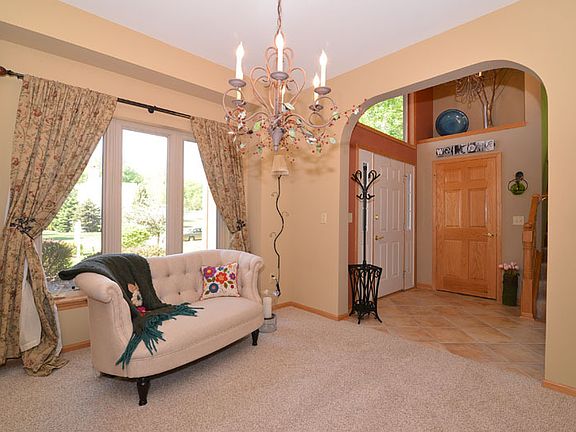 Single Family Home for sale by owner in Slinger, WI 53086. Don t miss this Gorgeous two story home with 2 car garage nestled on .49 acres with 2,311 square feet of living space, with a finished basement with additional 650 square ft. of living space which includes storage, fireplace, office, and entertaining which includes half bath. 9 ft. ceiling throughout, with central vac, speaker system in kitchen patio, and 3 bedrooms. 3 bedrooms with additional open concept loft that could be converted to a fourth bedroom. 2 full baths with double sinks, and two half baths to include one on main floor and one in basement. Master bedroom includes cathedral ceilings with ceiling fan. Beautiful arches throughout the home with additional flex room/dining room. Hardwood floors in the kitchen, walk in pantry, and separate laundry room. Tile in all bathrooms, and front foyer and hall way. Enfield Maple cabinets in kitchen, laundry room, and both master bath and guest full bath. Stainless steel appliances including Refrigerato