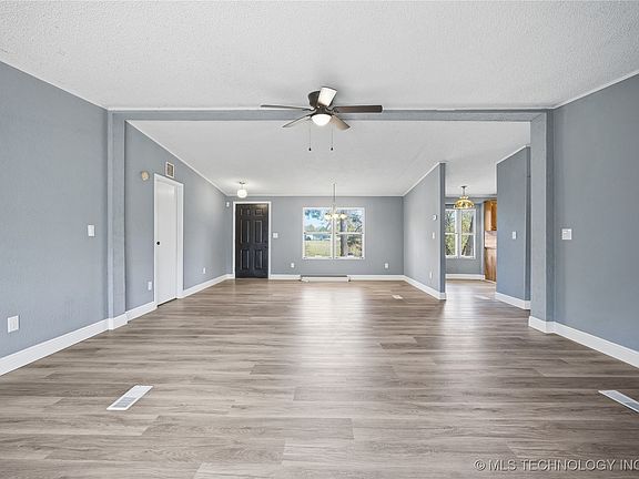 Country living just outside of town! This updated manufactured home as a new roof, sitting on approximately 1.25 acres (M/L) and is located just west of town. Features new front, side, and back decks along with shop with electric and additional storage building. The large lot is partially fenced and has water, gas, and electric available for additional structure, tiny home, or mobile. Schedule your appointment today!